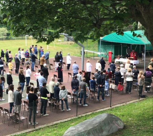 Sunday mass in Galliate Lombardo, Varese area (Lombardy Region), during Covid-19 restrictions in Italy.
